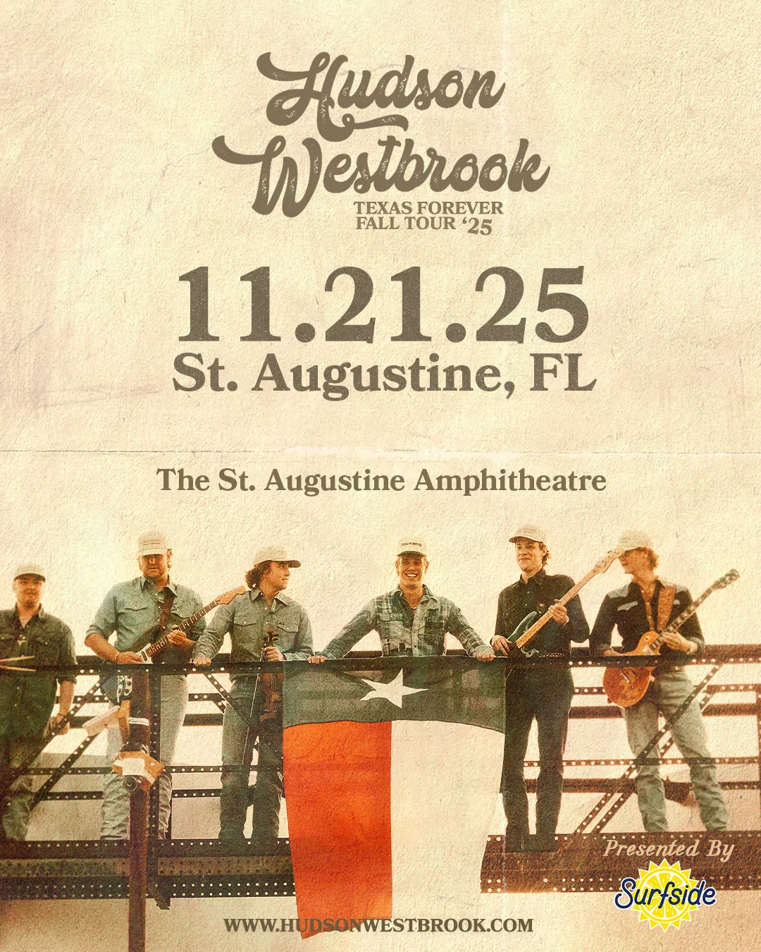 99.9 Gator Country Welcomes Hudson Westbrook's 'Texas Forever Tour' Friday, November 21st at The Saint Augustine Amphitheatre.