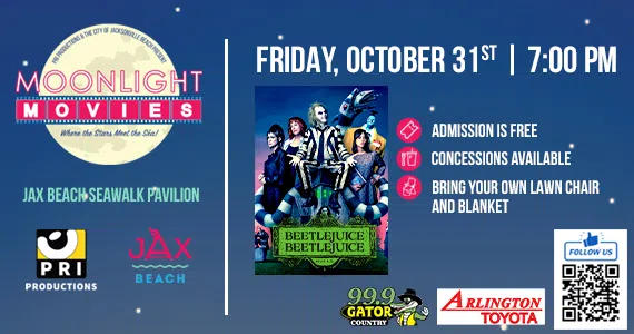 Join 99.9 Gator Country Friday October 31st at the Jacksonville Beach Seawalk Pavilion for Moonlight Movies.